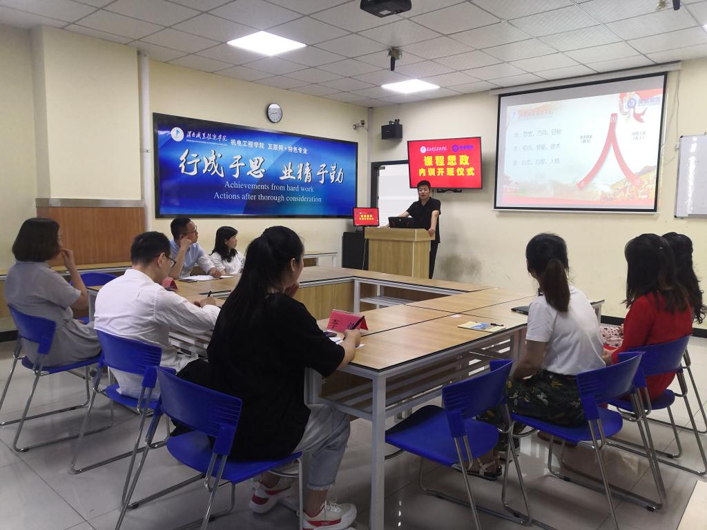 为响应国家职业教育实施改革及构建高校思想政治工作体系的号召,做好职业院校课程思政建设,提升教师思政育人的思想意识及能力,太阳成集团tyc122cc美和易思计算机应用技术专业于7月27日上午举办了第一届“课程思政”内训开班典礼。此次开班邀请了太阳成集团tyc122cc副经理邵航,美和易思计算机专业负责人张小红、学工负责人李倩参会,学术负责人杨宁老师主持典礼。