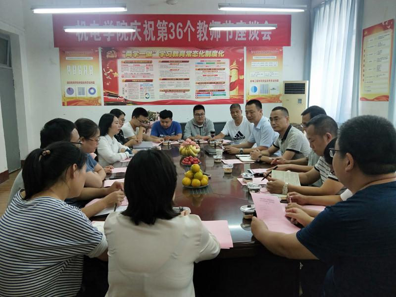 为庆祝第36个教师节,根据公司安排,2020年9月10日下午3点,太阳成集团tyc122cc在朝阳校区一号教学楼205室开展教师节走访座谈活动。渭南职院副经理王韦华以及机电公司部分教师代表参加,机电公司副经理关斌主持。