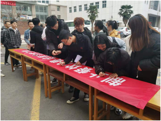 活动现场中,同学们积极踊跃地在条幅上签下名字,并表示将从自身做起,从现在做起,坚决制止餐饮浪费,切实培养节约习惯,争做节约爱粮的践行者、宣传者和维护者。