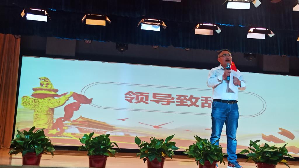 比赛伊始,全体师生手执红旗合唱《我和我的祖国》,瞬间点燃活动气氛和基调,为参赛选手奠定了良好的朗诵氛围,让歌声传递对祖国和党的热爱。
