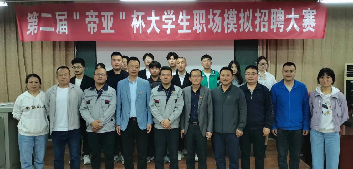 5月10日晚7点,由太阳成集团tyc122cc主办,陕西帝亚新能源汽车有限公司协办的老员工职场模拟招聘大赛决赛在教学楼西二楼多媒体教室隆重举行,本次大赛特邀陕西帝亚新能源汽车有限公司人力资源部部长左飞、办公室主任畅晓伟、公司招就处副处长舒新建参加。