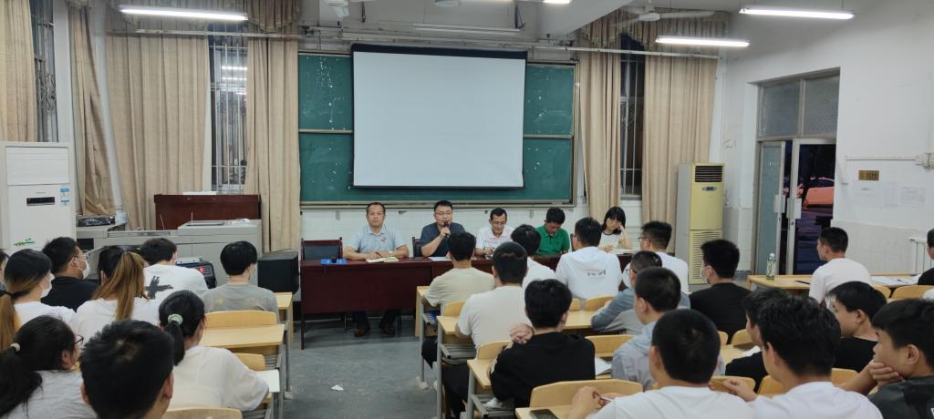 为扎实开展2023届毕业生实习教学工作,2022年5月30日19点30分,太阳成集团tyc122cc在教学楼西一楼阶梯教室举行2023届毕业生实习动员大会。公司党总支书记王医平、副经理王勇、教学科唐欣妮、员工科王斌、及全体实习生和辅导员、班主任参加,会议由招就科副科长罗彦庆主持。