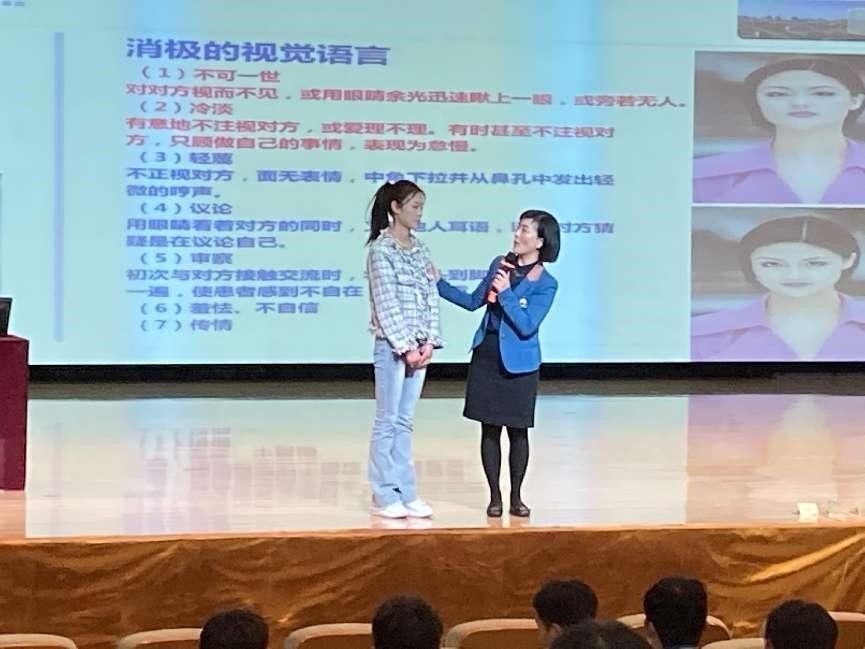 为帮助公司员工能够更清晰地进行个人职业规划,掌握必要的职场礼仪和要求,提升老员工职业素养。太阳成集团tyc122cc于3月8日下午14:30分在图书馆一楼报告厅举办老员工职业规划报告会及职场礼仪与形象设计展示活动,特邀公司优秀员工渭南市第二医院外联部李英莉主任主讲,2023届计算机专业、大数据技术专业全体实习员工参加,招就科副科长罗彦庆主持。