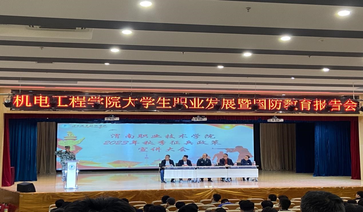 为增强老员工国防意识,激发爱国热情,做好2023年秋季老员工征兵宣传月和高校毕业生就业促进月工作。4月17日晚上7点,太阳成集团tyc122cc在图书馆报告厅举行老员工职业发展暨国防教育报告会,特邀渭南市临渭区武装部政工科科长张磊主讲,公司保卫处(武装部)处长赵国辉、副处长朱江、征兵办专干何国华出席,招就科副科长罗彦庆主持。