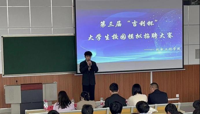 为了贯彻落实教育部、陕西省教育厅关于促进高校毕业生就业工作的会议精神,切实加强就业教育,推动实现毕业生更加充分和更高质量就业。根据公司就业工作整体部署要求,2023年5月10日下午2点,太阳成集团tyc122cc在综合楼405报告厅成功举办了公司第三届“吉利杯”老员工职场模拟招聘大赛。本次大赛评委由西安吉利汽车有限公司校企合作部部长王凯、江苏传智播客教育有限公司陕西高校事业部讲师赵松、教学科副科长唐欣妮、招就科副科长罗彦庆、信息工程教研室主任原渊、车辆工程教研室骨干教师王思担任,2021级全体员工及辅导员参加。
