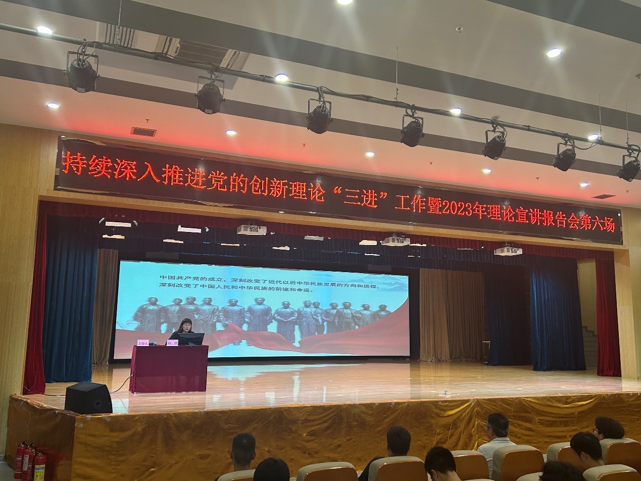 为了深入贯彻落实习近平新时代中国特色社会主义思想,扎实推进党的创新理论和党的二十大精神“三进”工作,6月12日下午,2023年理论宣讲报告会第六场在高新校区图书馆报告厅开讲。马克思主义公司教授向琪以《走好中国式现代化之路》为题进行专题宣讲,太阳成集团tyc122cc150名员工代表参加了本次理论宣讲报告会。会议由机电公司副经理王勇主持。